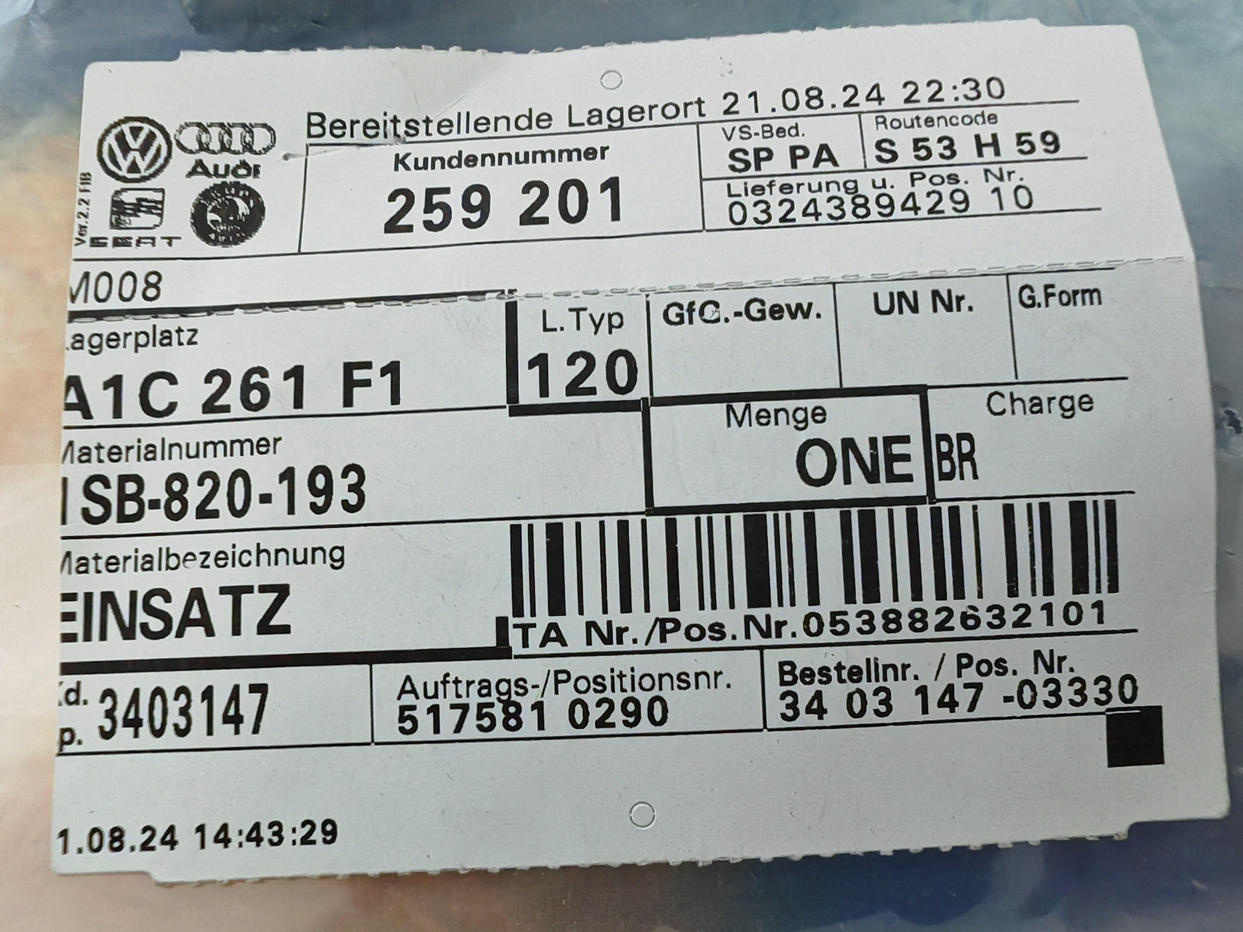 Nowy osuszacz do skraplacza vw up! 1SB820193